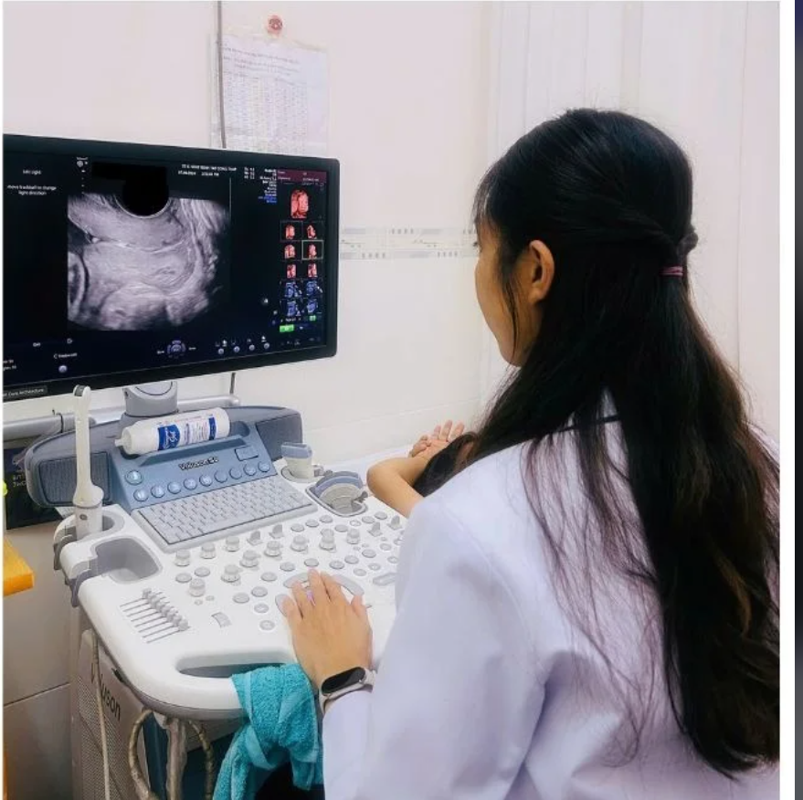 Hình 2: Siêu âm đo chiều dài cổ tử cung tại Trung tâm Kiểm soát bệnh tật Đồng Tháp